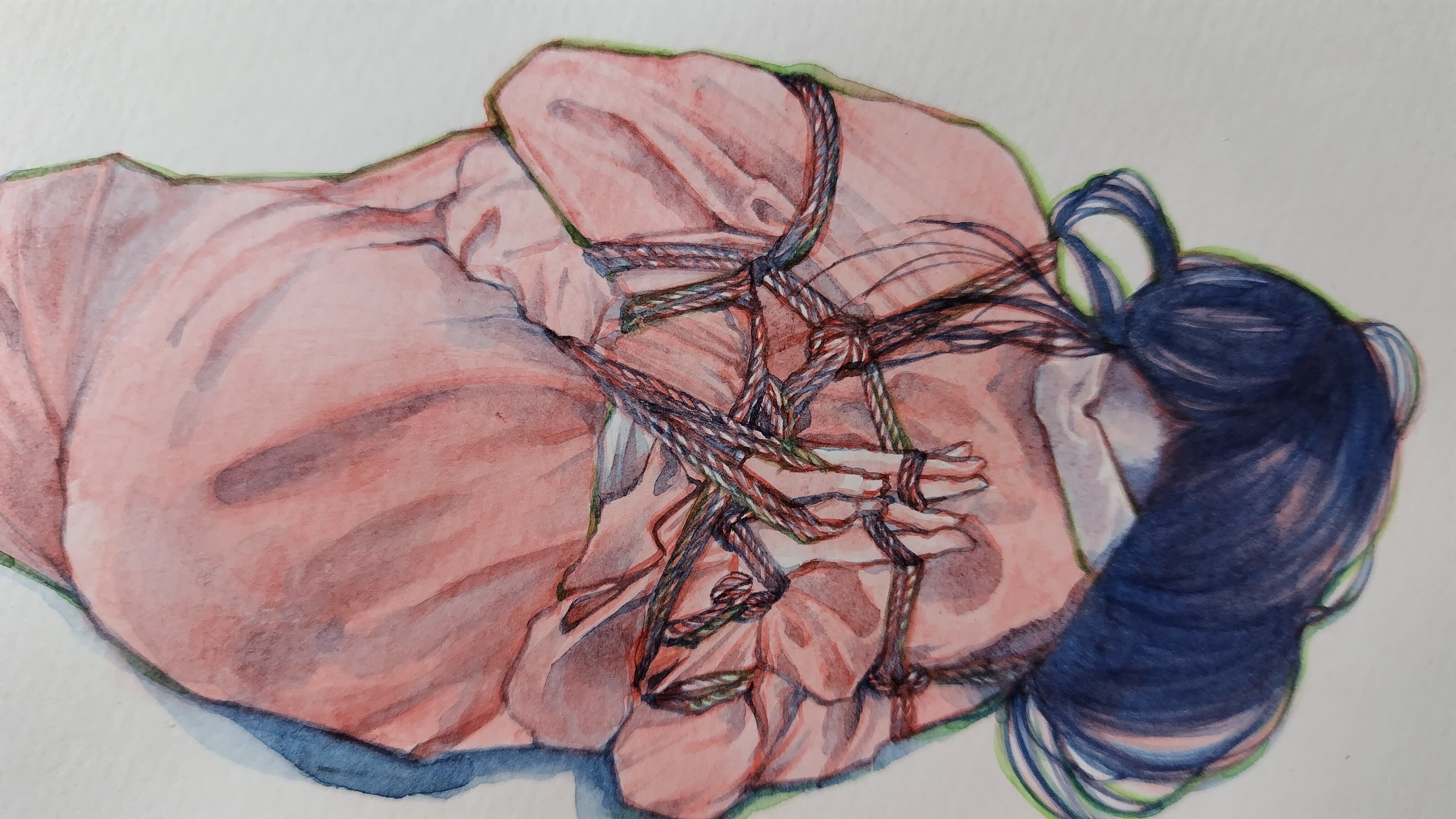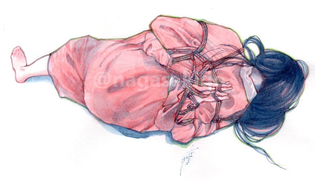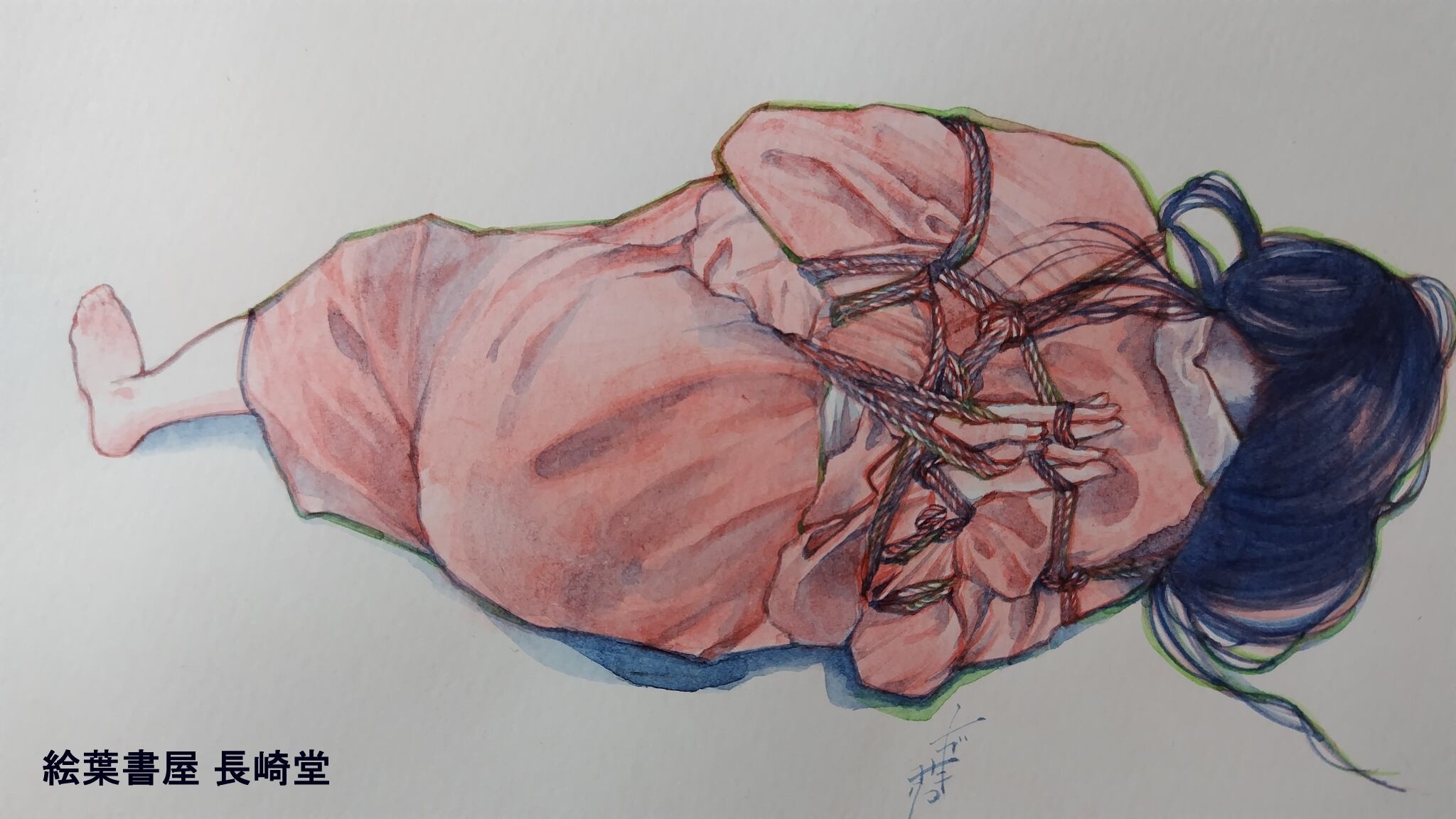 艶絵 緊縛絵 ドローイング「背面合掌」直筆絵 | 絵葉書屋 長崎堂