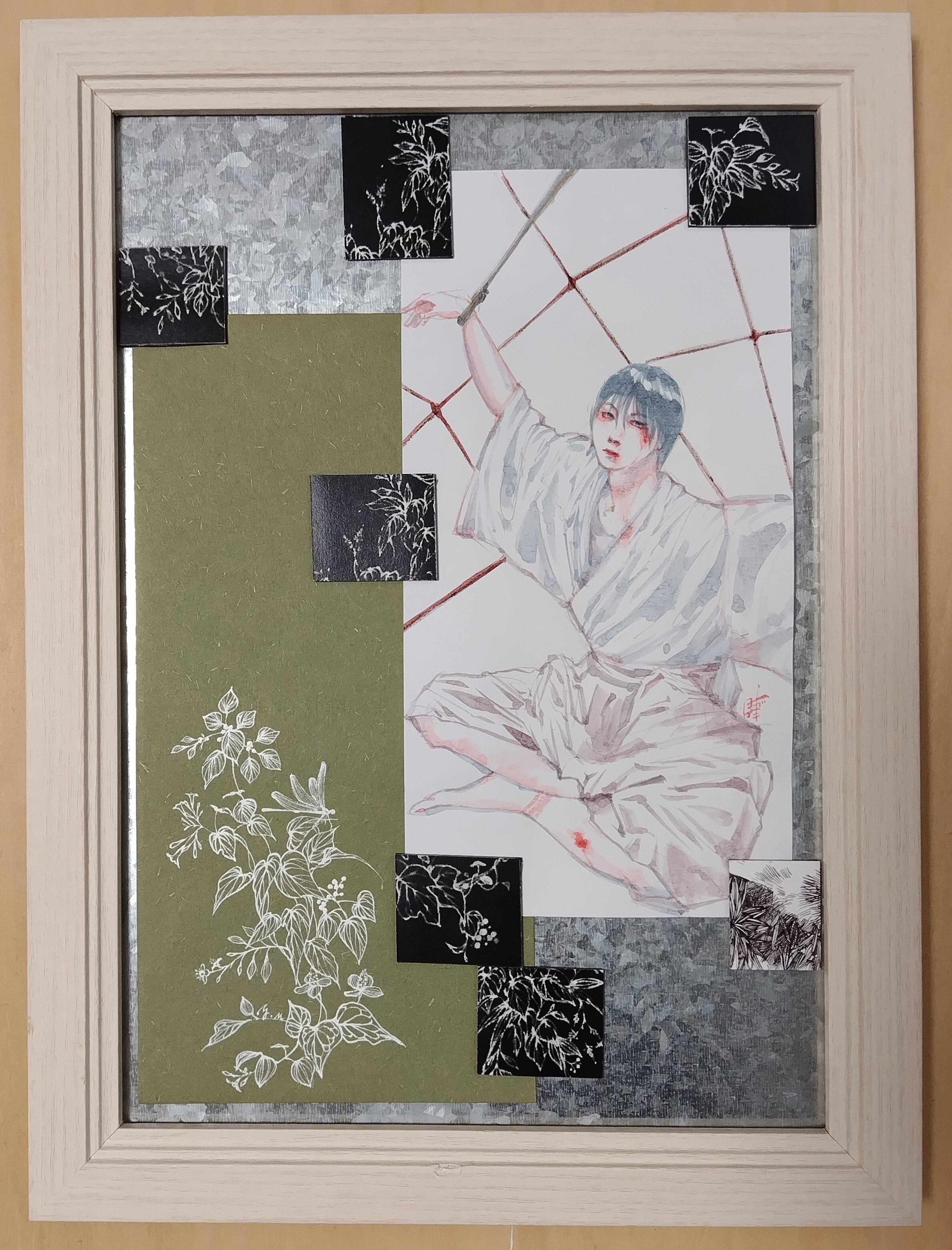 210×108mm 鉛筆、水彩、火山灰の絵具/コピー用紙 直筆の柄を絵付けした封筒とセットです。